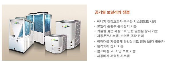 | 1. | 친환경적시스템 :친환경성 자연 에너지원인 공기의 열원을 사용하므로 환경오염 없는 친환경 설비시스템 |