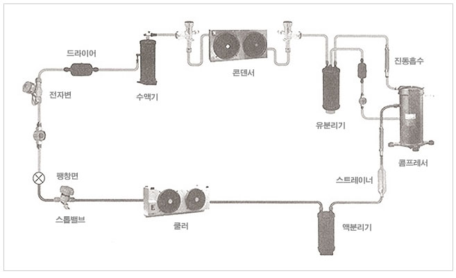 증발부 : -압축기 토출 고온 고압 냉매와 열교환하여 온수 공급